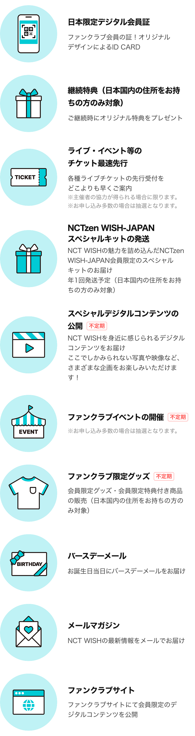 ※ 本ページに記載の特典は「NCTzen WISH-JAPAN」 Membership (JP)をご購入いただいた場合に限ります。NCTzen WISH Membership (GLOBAL)をご購入された場合、特典内容が異なりますのでご注意ください。