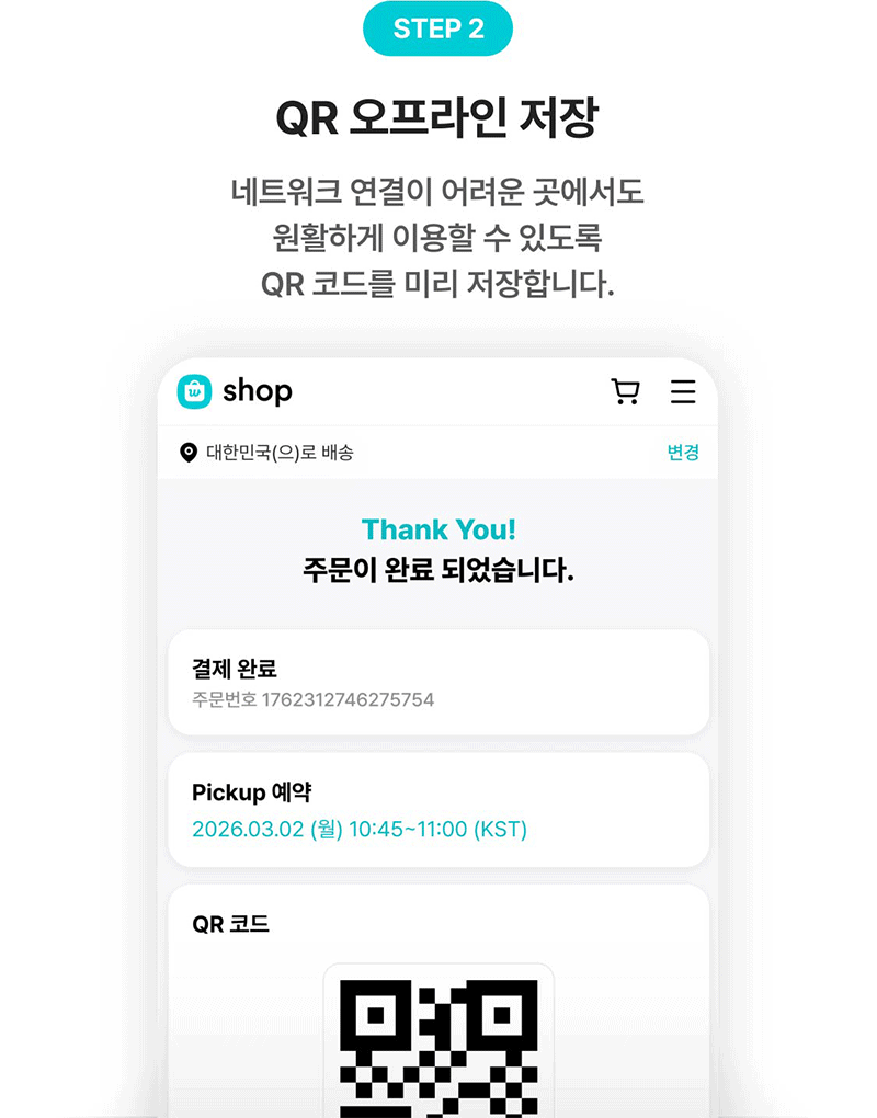 Pickup 예약 후, QR 코드를 오프라인으로 저장해 두세요.
