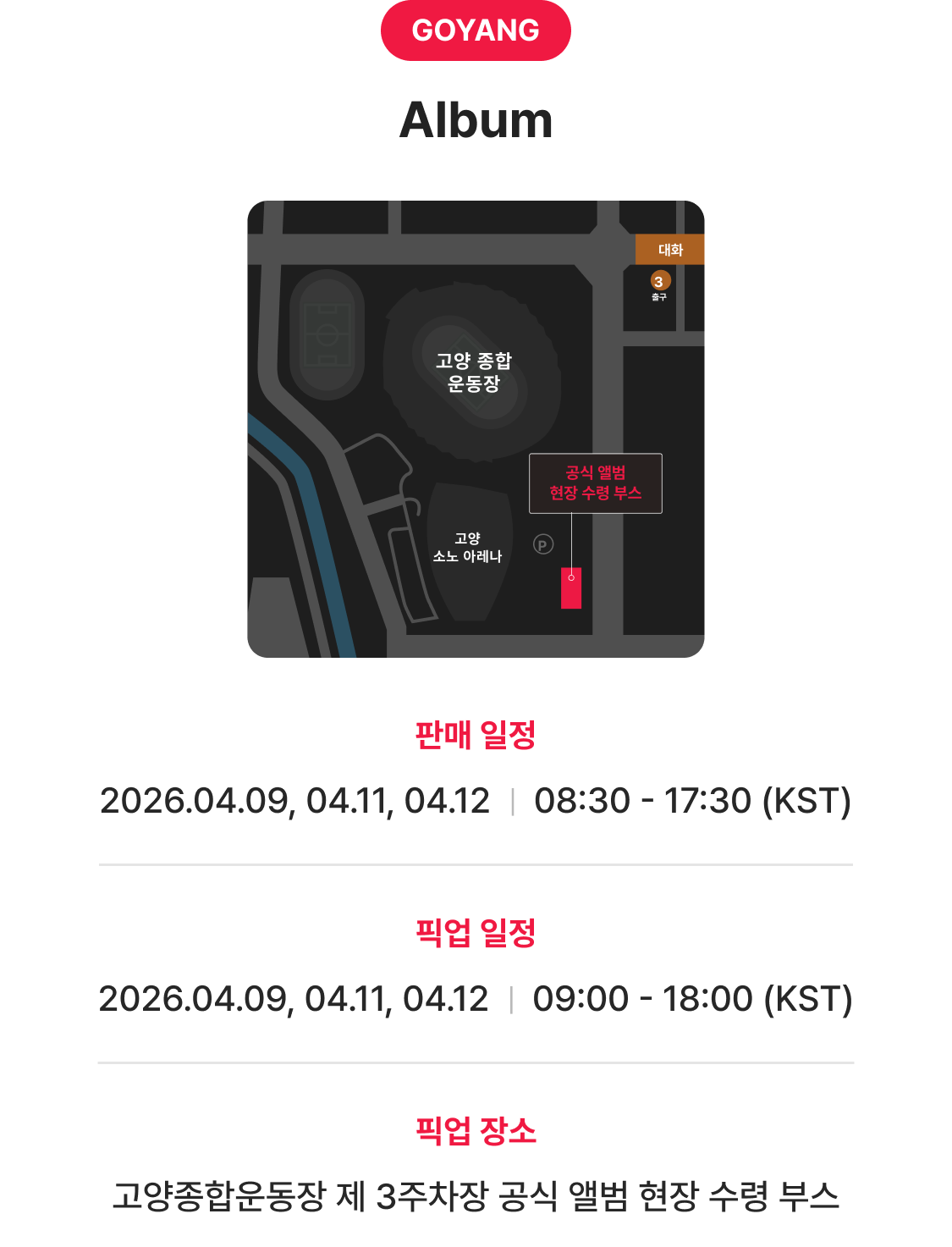Pickup 일정 및 장소
