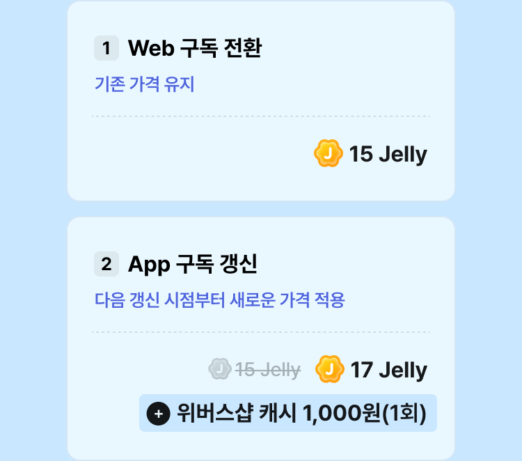 다음 달부터 Web으로 변경하려면, 현재 App 구독을 먼저 취소해 주세요.