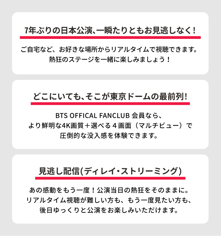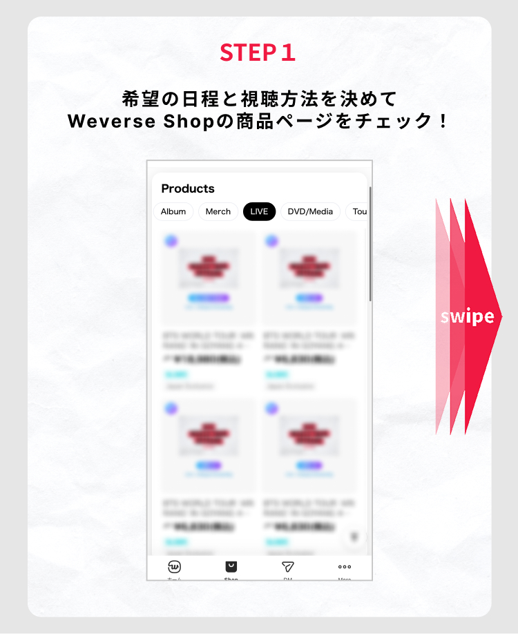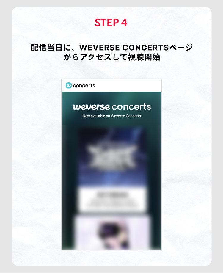 本配信は、「Weverse Shop」で利用券をご購入いただき、上記ページにて「利用券を購入されたWeverse Account」でログインおよび利用券を認証することでご覧になれます。